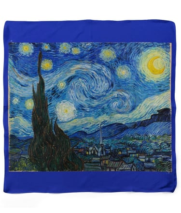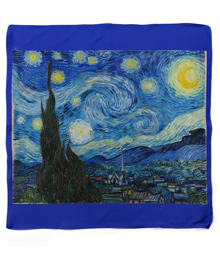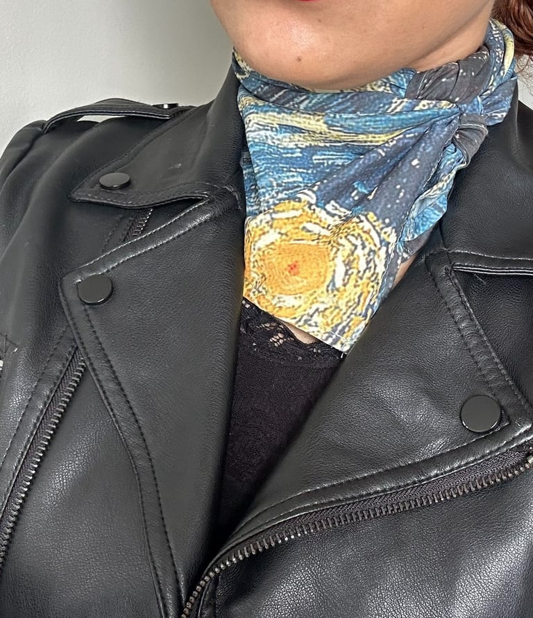 “Lenços com estampas de obras de arte clássicas reconhecidas mundialmente. Um toque de história da arte no seu look — feito com carinho por mãe e filhas.”