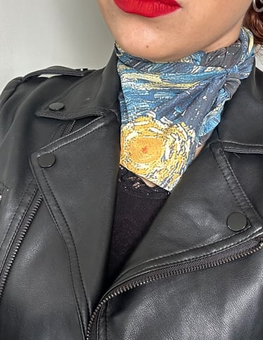 Lenços autorais inspirados em obras clássicas.